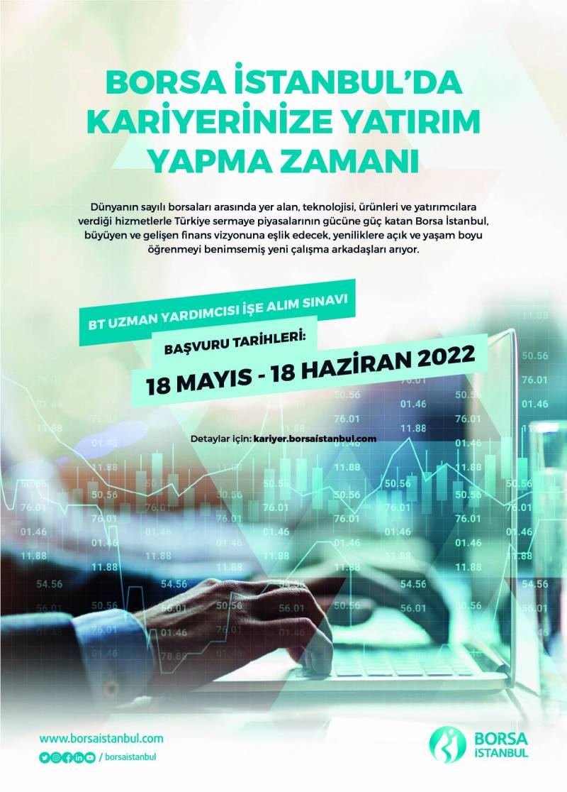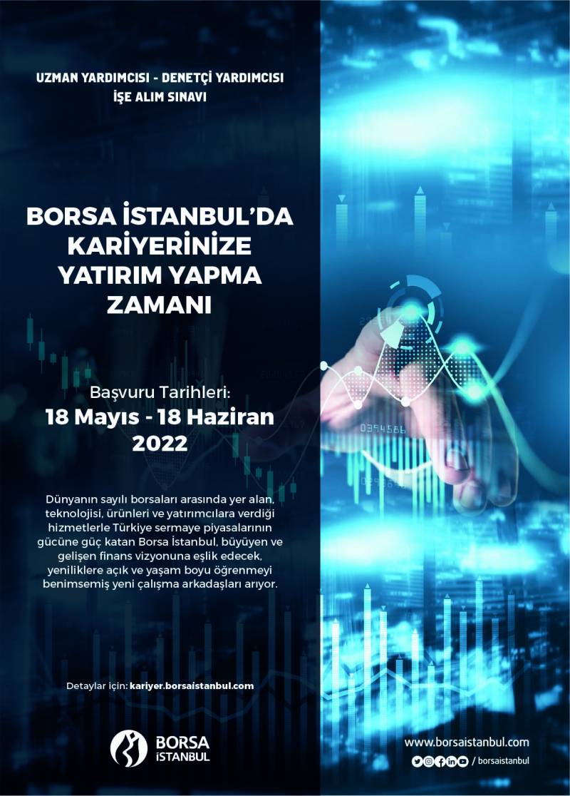 Borsa İstanbul "Uzman Yardımcısı" ve "Denetçi Yardımcısı" pozisyonları için işe alım sınavı yapacaktır. Öğrencilerimize ilanen duyurulur. 26.05.2022