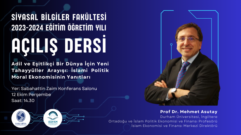 Söz konusu etkinlik; 12 Ekim 2023 Perşembe günü saat 14.30'da Hukuk Fakültesi Prof. Dr. Sabahattin Zaim konferans salonunda gerçekleştirilecek olup, Programda Fakülte Danışma Kurulu üyemiz ve Durham Üniversitesi, Ortadoğu ve İslam Politik Ekonomisi ve Finansı Profesörü ve İslam Ekonomisi ve Finansı Merkezi Direktörü Prof. Dr. Mehmet ASUTAY konuşmacı olarak katılacaktır.