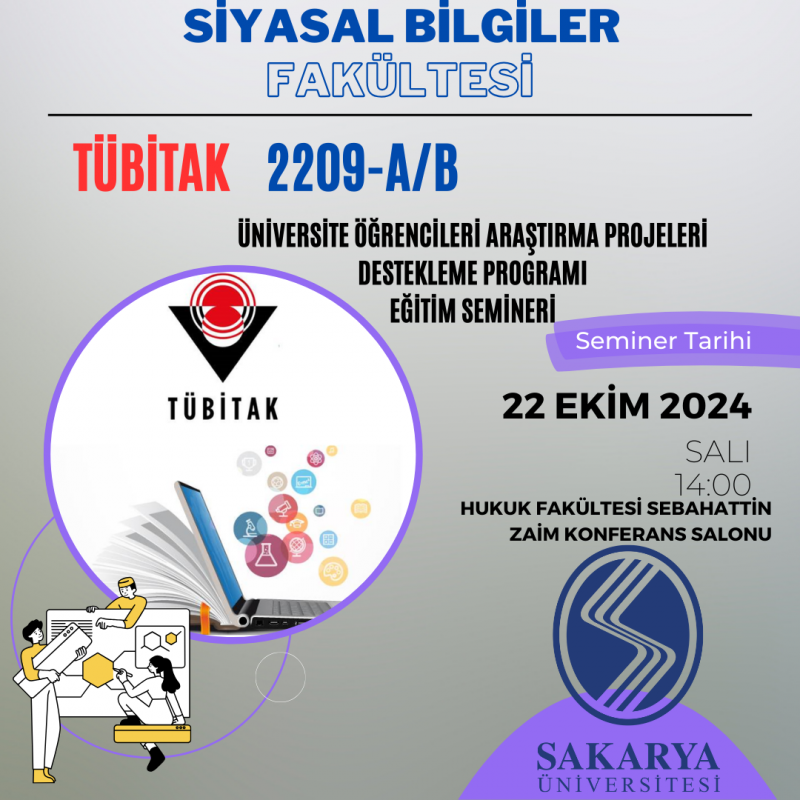 TÜBİTAK 2209-A/B Üniversite Araştırma Projeleri Destekleme Programı çerçevesinde, fakültemizde öğrenim gören öğrencilerimizi araştırma projeleri geliştirmeye teşvik etmek amacıyla bir eğitim semineri düzenlenecektir.