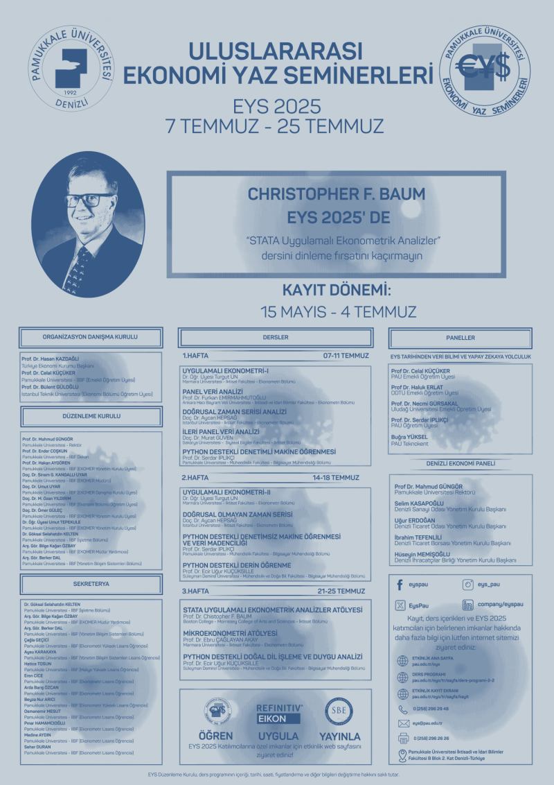 Pamukkale Üniversitesi ev sahipliğinde, 7-25 Temmuz 2025 tarihleri arasında gerçekleştirilecek olan Uluslararası Ekonomi Yaz Seminerleri, ekonomi ve ilişkili disiplinlerde uluslararası düzeyde önemli bir bilimsel etkinlik olma niteliği taşımaktadır.