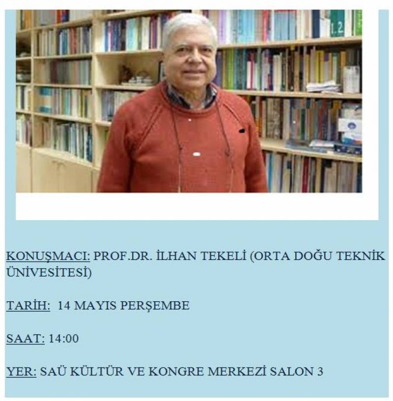 Sakarya Üniversitesi Siyasal Bilgiler Fakültesi, Orta Doğu Teknik Üniversitesi öğretim üyesi Prof. Dr. İlhan Tekeli’yi konuk edecek.