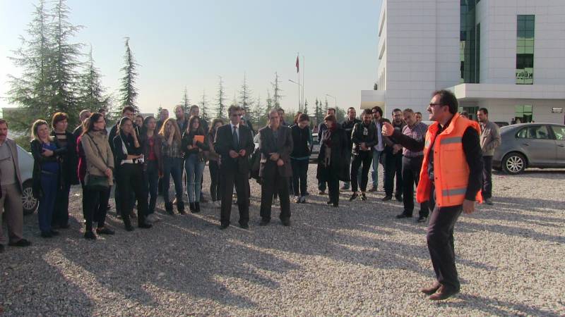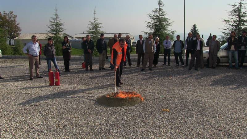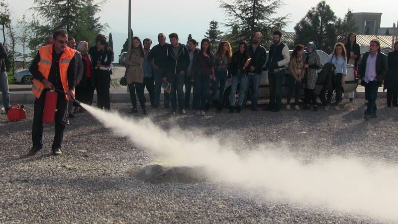 Tatbikatta yangın anında neler yapılması gerektiği, yangın tüplerinin kullanımını ve yangın sonrası yapılması gerekenler konusunda çeşitli bilgiler verildi.