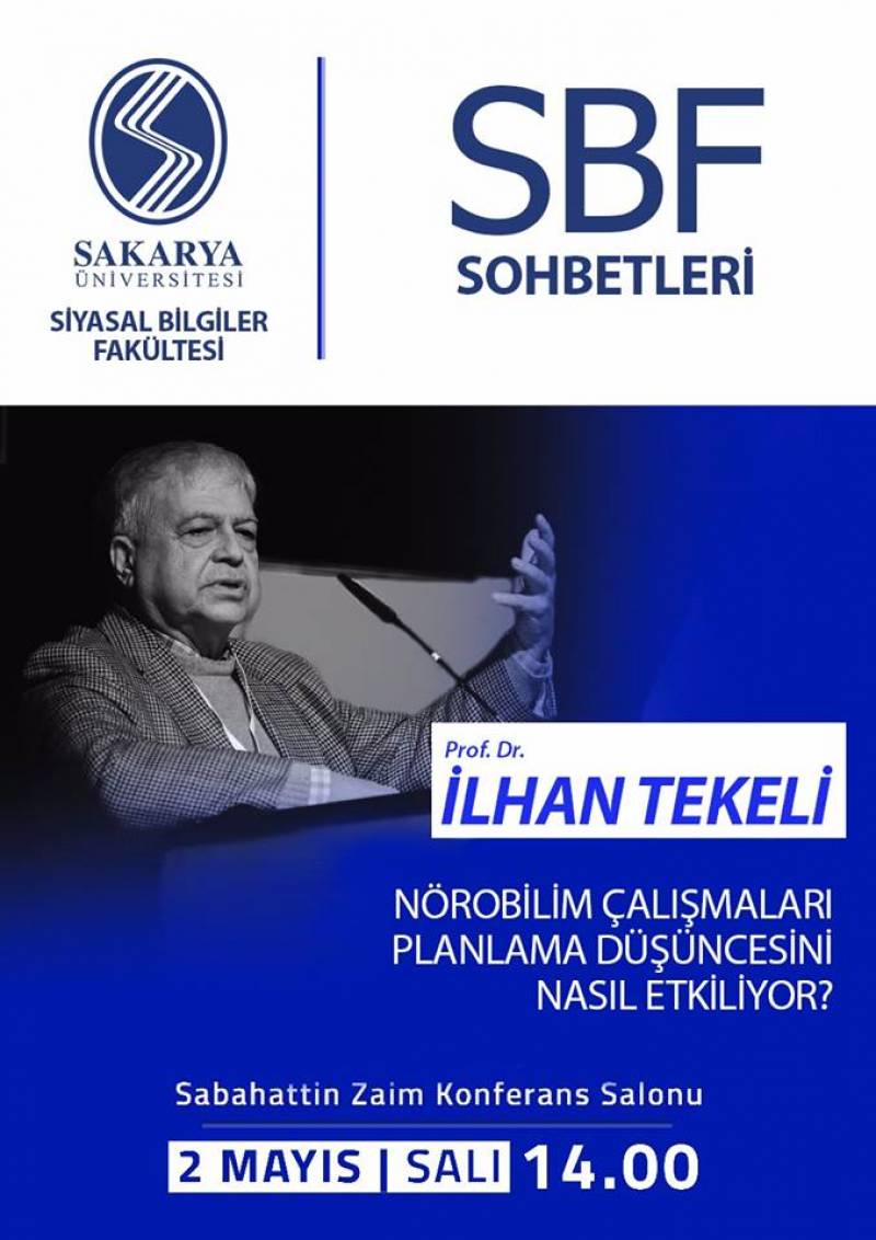 Kent Bilimci Prof. Dr. İlhan TEKELİ'nin katılımlarıyla, Fakültemiz SBF Sohbetleri kapsamında 02 Mayıs 2017 Salı günü Saat 14.00’ da "Nörobilim Çalışmaları Planlama Düşüncesini Nasıl Etkiliyor?" konulu bir etkinlik gerçekleştirilecektir.
