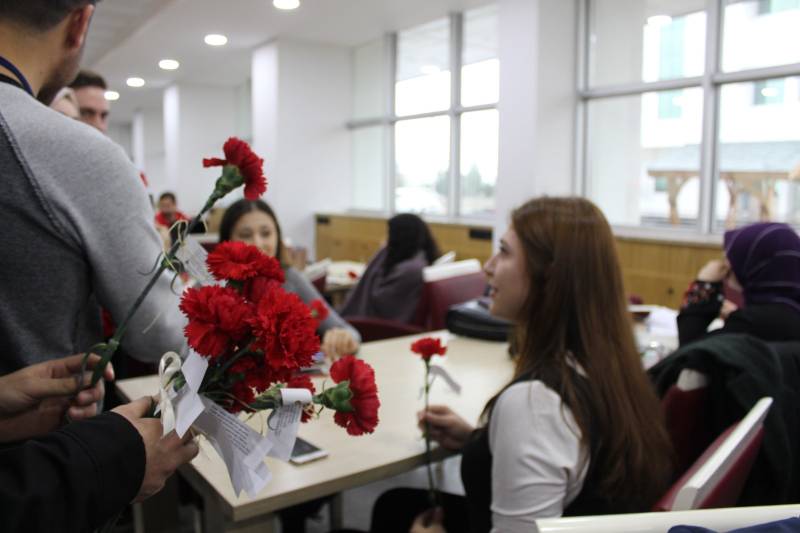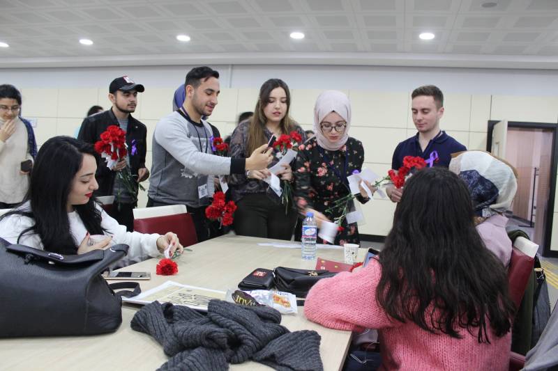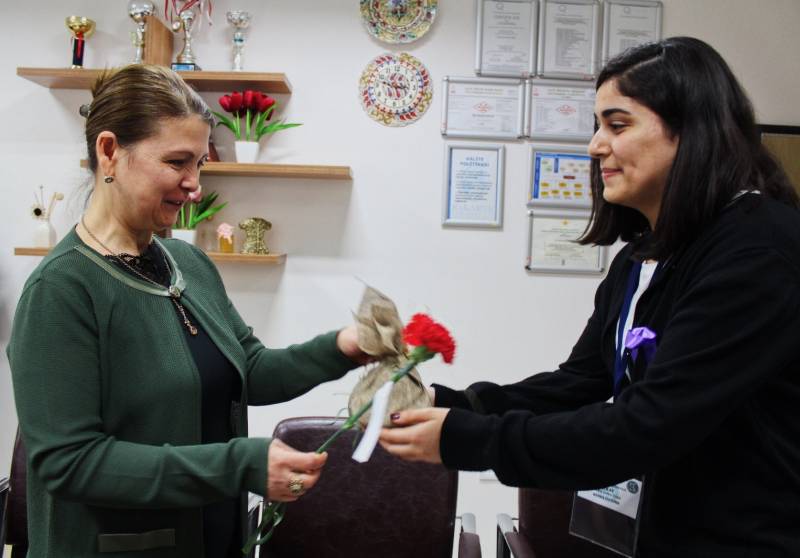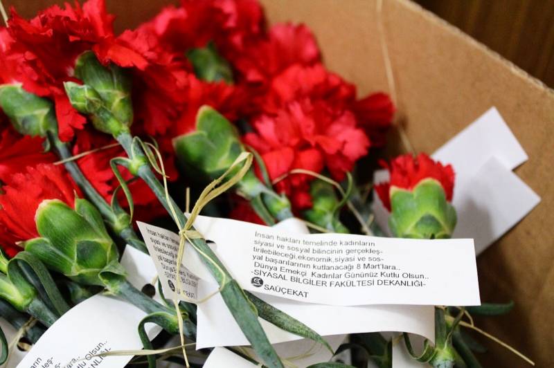 Fakültemiz ÇEKAT Öğrenci Topluluğu ve Fakülte Dekanliginin ortaklaşa düzenlediği 8 Mart Dünya Kadınlar Günü etkinliğinde öğrencilerimiz bayan personelimize karanfil ve hediye dağittilar.