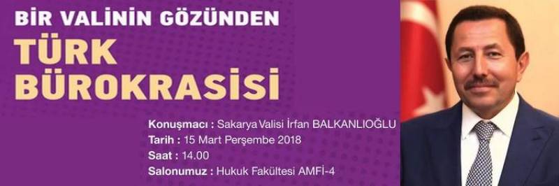 Fakültemiz Siyaset Bilimi ve Kamu Yönetimi Bölümü Siyaset Bilimi ve Kamu Yönetimi Topluluğu etkinlikleri kapsamında Sakarya Valisi İrfan BALKANLIOĞLU 15 Mart 2018 Perşembe günü "Bir Valinin Gözünden Türk Bürokrasisi" başlıklı konferansta öğrencilerimizle buluşacaktır.