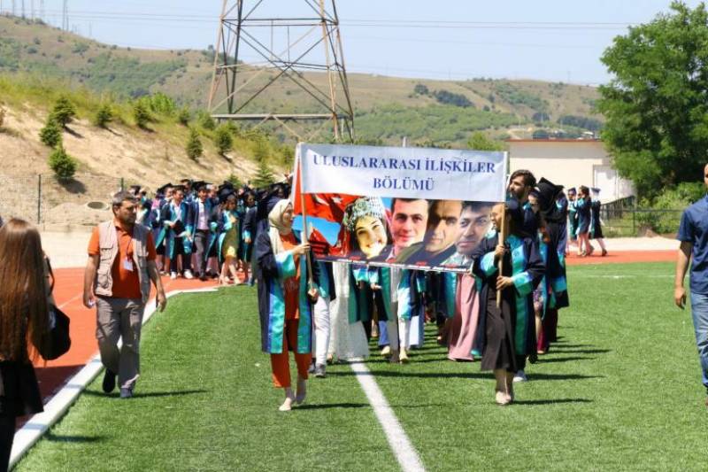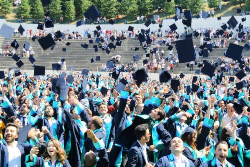 Tören, mezuniyet yemini ve kep fırlatılması ile sona erdi.