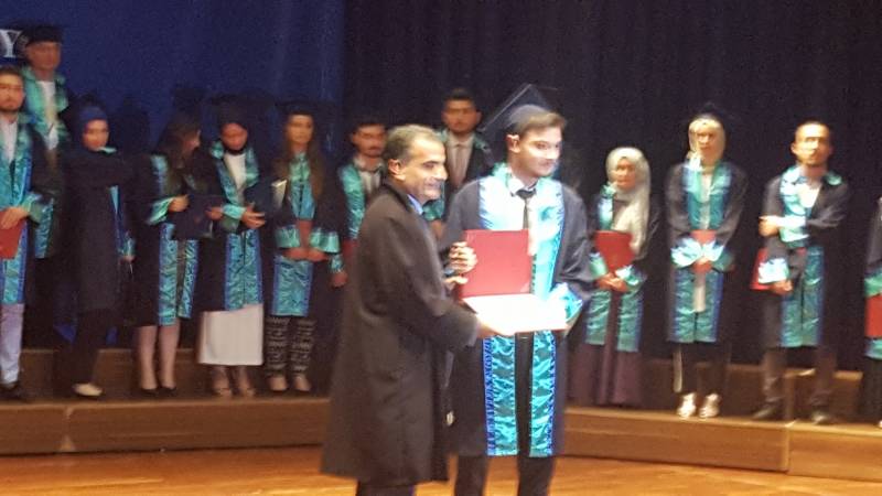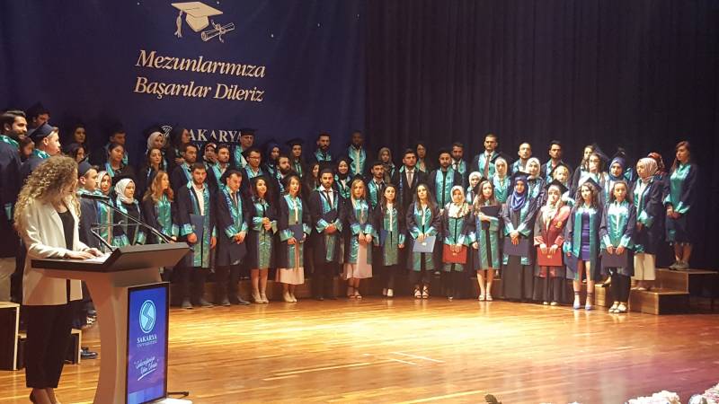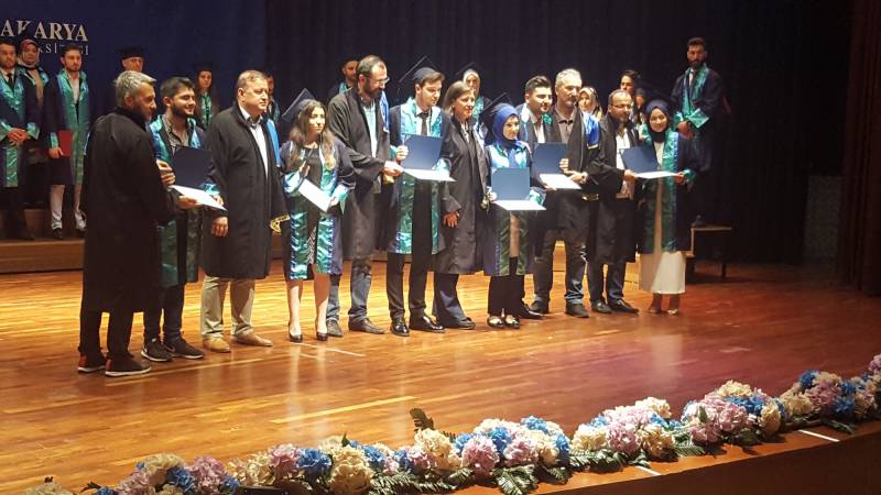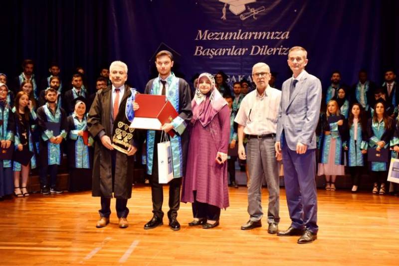 Kültür ve Kongre Merkezi’nde düzenlenen Genel Mezuniyet Töreni'nde Fakültemiz birincisi, Üniversite ikincisi Siyaset Bilimi ve Kamu Yönetimi Bölümü öğrencisi Aykut ÖZTAŞ, belgesini ve ödülünü Sakarya Milletvekili Ümit DİKBAYIR ve Rektör Yardımcısı Prof. Dr. Musa EKEN’ in elinden aldı.