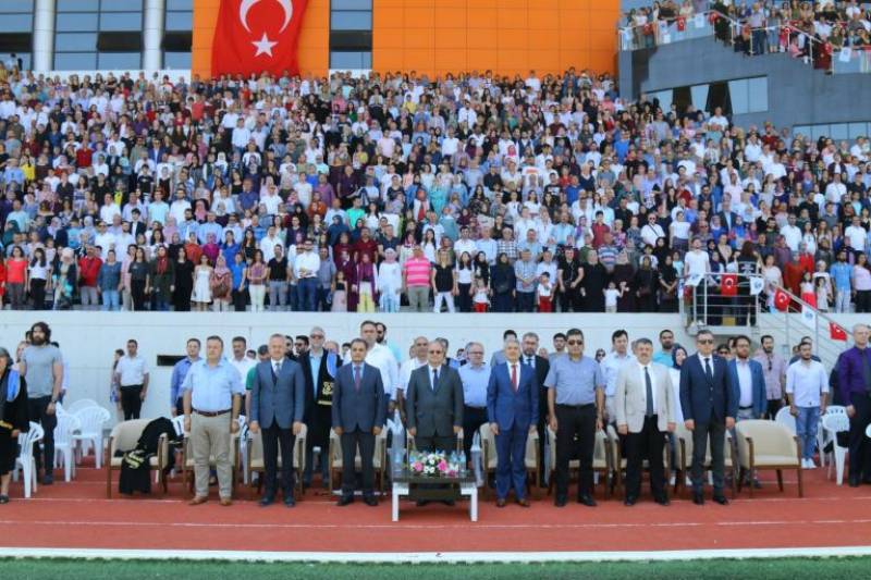 Spor Bilimleri Fakültesi Sahasında düzenlenen mezuniyet törenine Fakültemiz Dekanı Prof. Dr. Hamza AL, öğretim üyeleri, idari personel, öğrenciler ve aileleri katıldı.