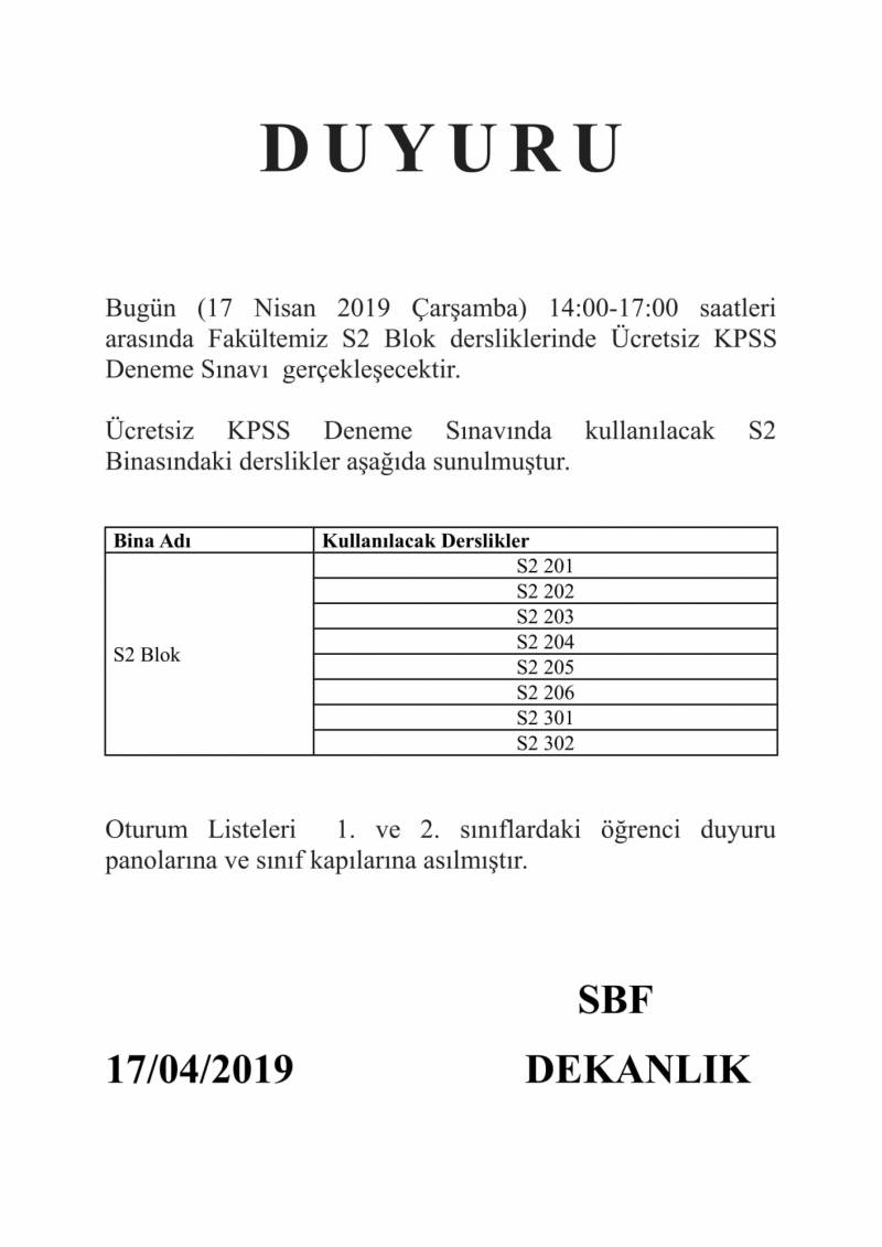 Kpss Deneme Sınavına Girecek Öğrencilere Duyuru